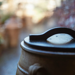 There is no more elegant way to conserve water in your garden than in a Pots & Pithoi hand thrown Cretan terracotta water butt. Your water butt is hand made by artisans, and due to the unique blend of the clay and the traditional firing method, will have its own unique patina. An oak lid can be purchased separately, please contact us.