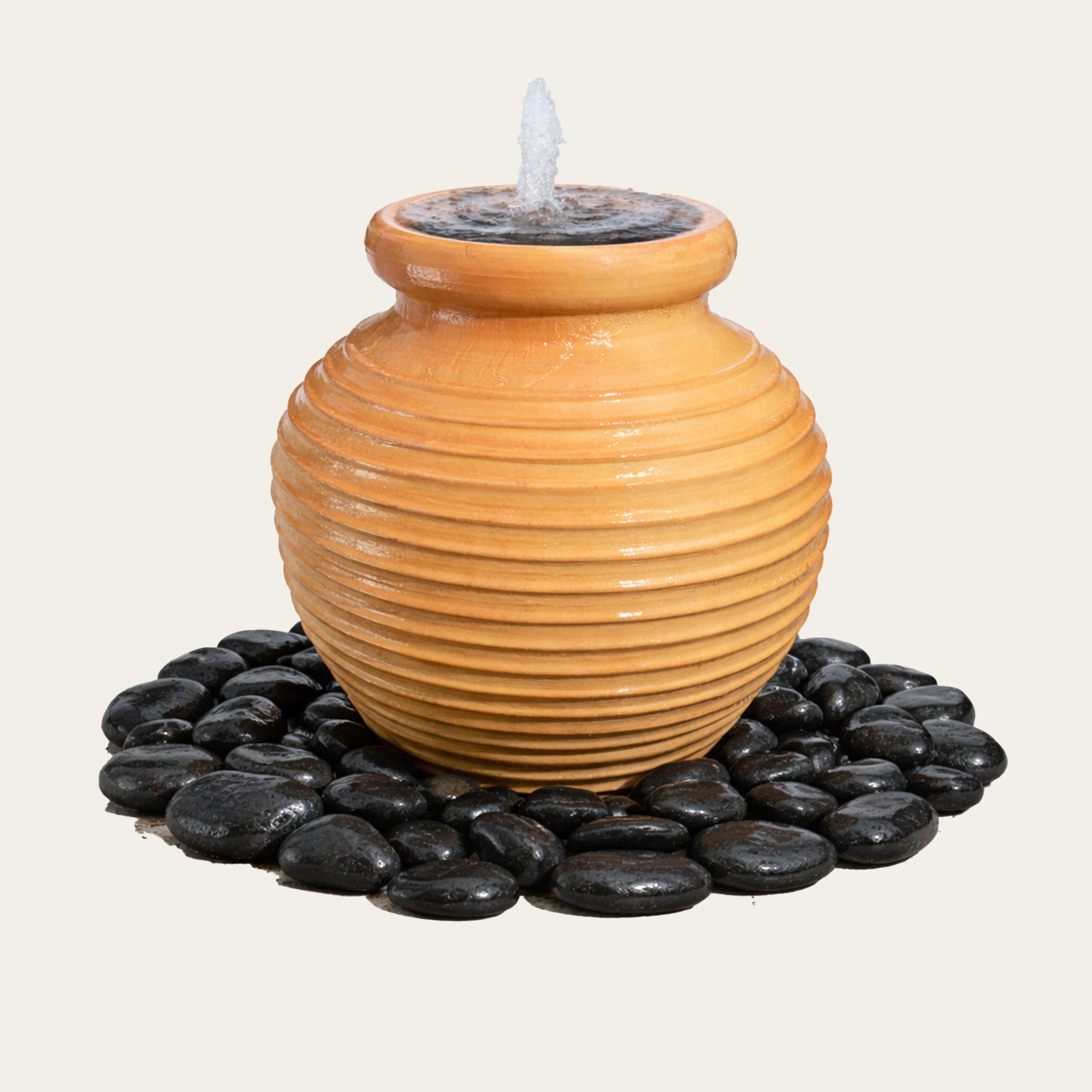 The generous curves of The Chania terracotta pot make a particularly attractive water feature. The water spills off the wide lip to creating a unique ripple effect. Choose from a range of sizes to fit your garden.