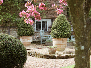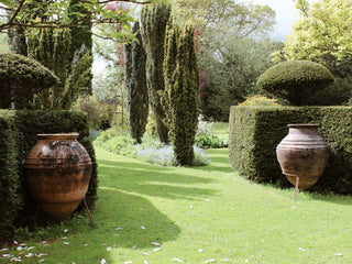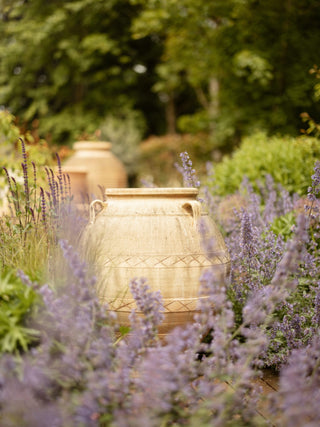 Cretan terracotta has a soft, apricot colour which creates a harmonious look in this traditional English garden.