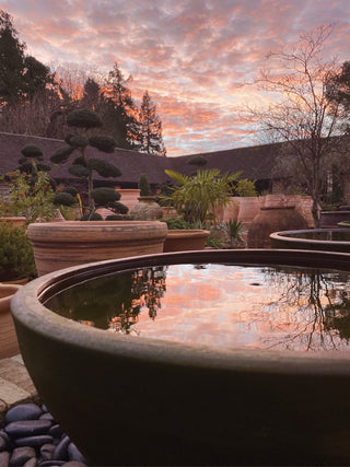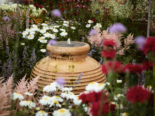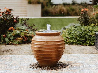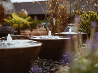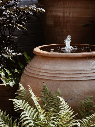 Concentric rings form on the surface of this water feature before sliding over the edge and down the side of the pot.